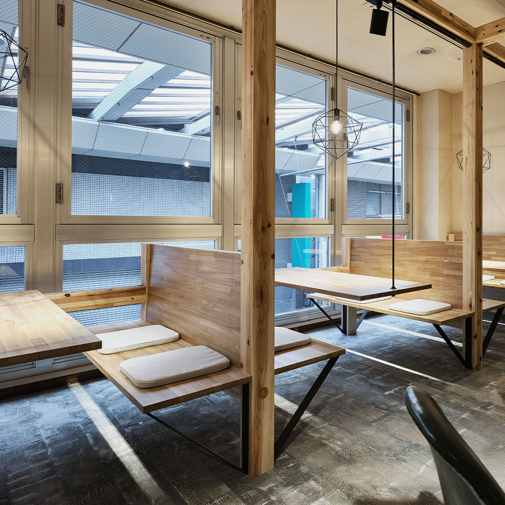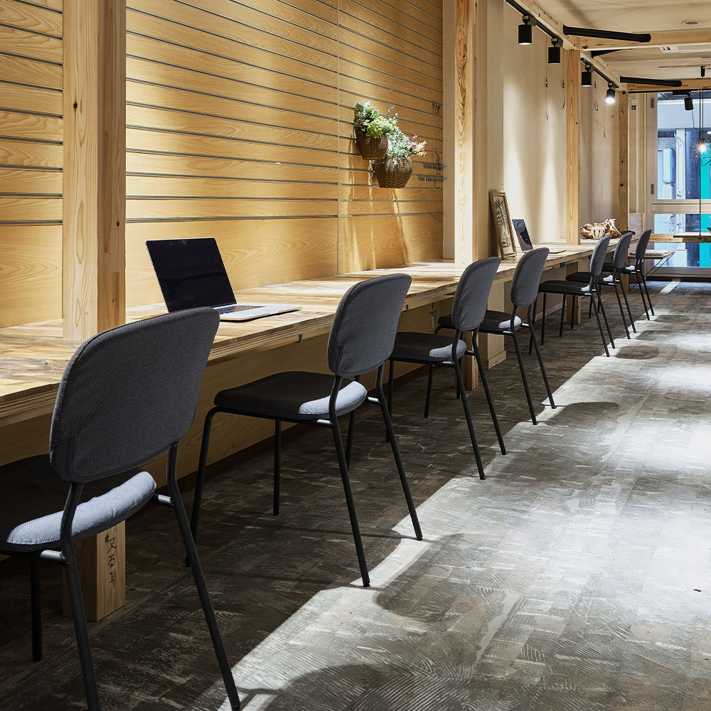 お1人様からドロップインで利用しやすいカウンターテーブルタイプのワークスペース。