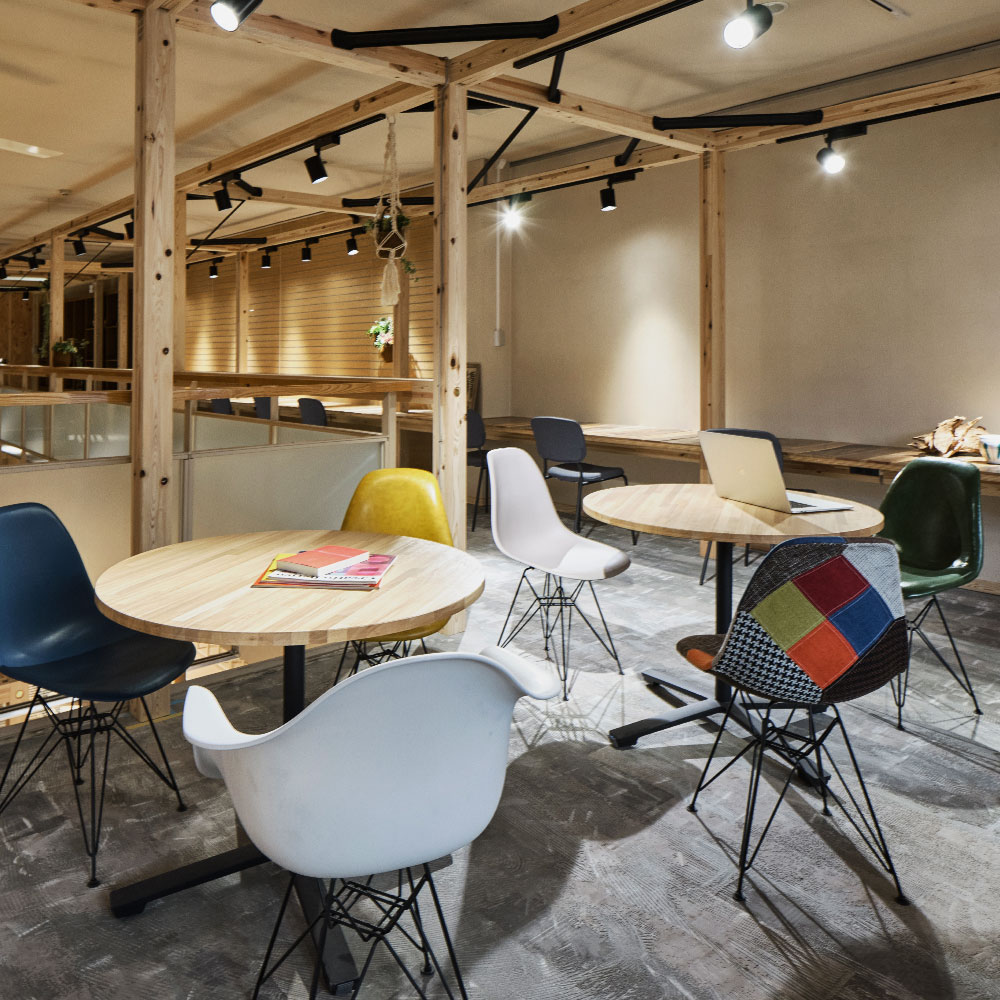 お茶をしながらライトなミーティングなど、気分と発想を転換するカフェテーブル。